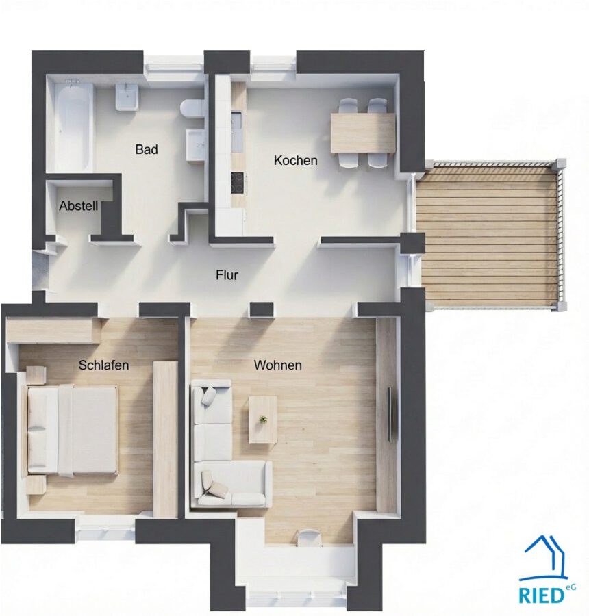 Fotos teils KI-optimiert. Grundriss & Möblierung dienen nur als Beispiel. Verbindlich ist der Zustand vor Ort.