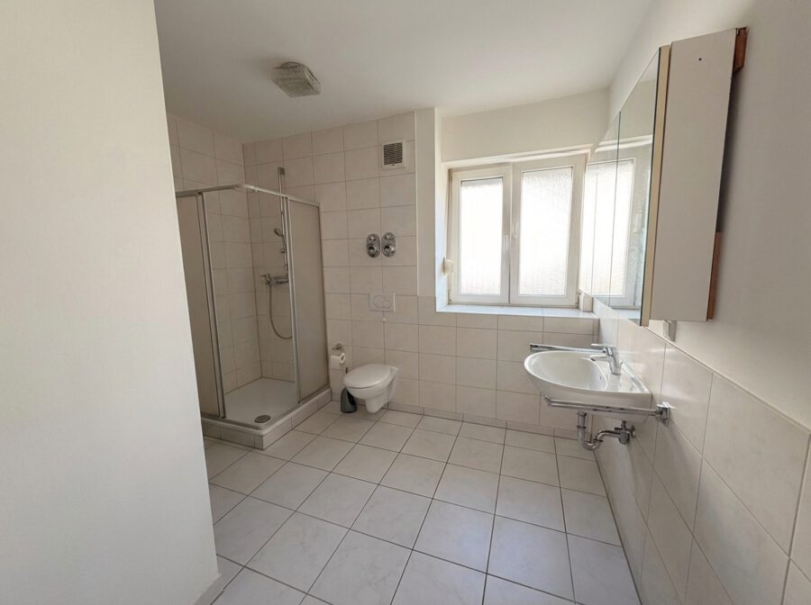 Das Badezimmer ist mit Dusche, Waschbecken und WC ausgestattet. Ergänzt wird das Raumangebot durch eine praktische Abstellnische, die wertvollen Stauraum für Haushaltsutensilien bietet.