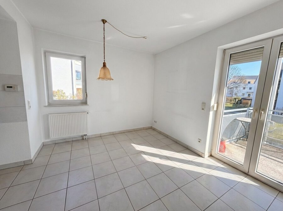 Die separate Küche ist praktisch geschnitten und verfügt über genügend Raum für einen kleinen Essplatz. Kurze Wege und eine funktionale Anordnung machen das Kochen hier besonders angenehm. Von hier aus gelangen Sie direkt auf den Balkon, der ausreichend Platz für eine gemütliche Sitzgruppe bietet – perfekt für entspannte Stunden im Freien.