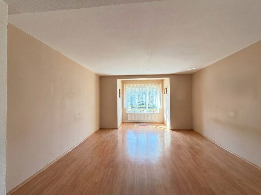 Herzstück der Wohnung ist das großzügige Wohnzimmer, das dank seiner optimalen Proportionen vielseitige Einrichtungsmöglichkeiten bietet. Große Fensterflächen sorgen für viel Tageslicht und schaffen eine freundliche Atmosphäre.