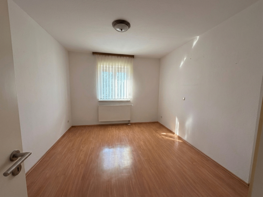 Das Schlafzimmer bietet ausreichend Platz für ein großes Bett sowie einen Kleiderschrank und lädt zum Entspannen ein. Durch die gute Raumaufteilung entsteht eine ruhige und behagliche Rückzugsoase.